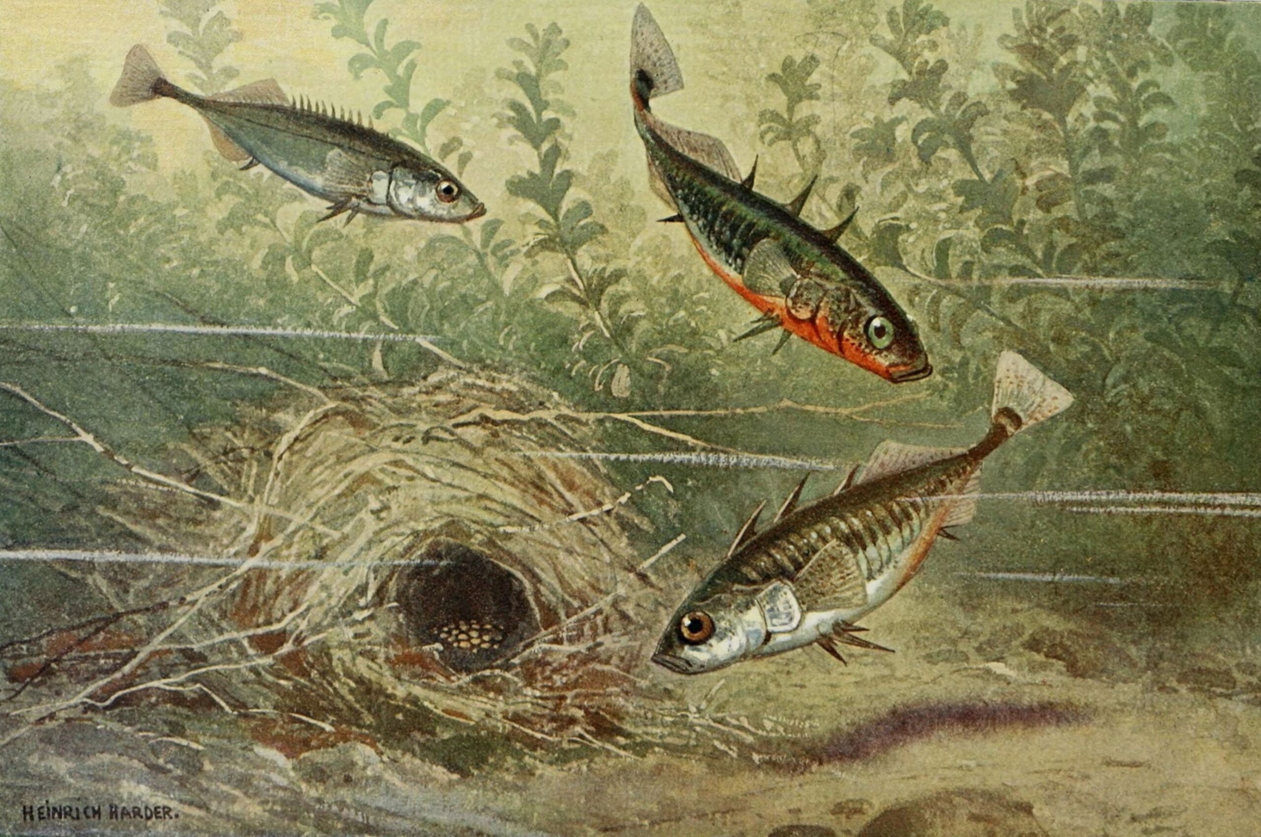 Notas: Science News, 3/15/03, pp. 165-166, S. Milius, “Fish That Decorate.” Foto: Sticklebacks and nest, Walter, Emil, PD, Wikimedia Commons.